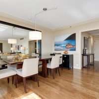 From the moment you step inside the gracious entry foyer, your gaze is drawn outward to the sparkling lake and skyline. The expansive living and dining rooms create a seamless setting for grand entertaining or relaxed evenings at home, all while embracing those magnificent views. The kitchen combines form and function with stone countertops, updated stainless steel appliances, including a Sub-Zero refrigerator, and abundant cabinetry.