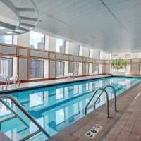 The building itself is a haven of luxury, offering an array of world-class amenities: an indoor lap pool, a state-of-the-art fitness center, a top-floor deck with jaw-dropping views, attentive door staff and concierge service, and the convenience of attached garage parking.