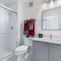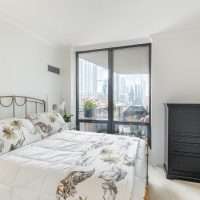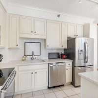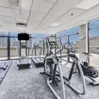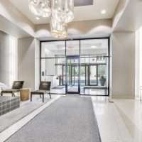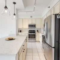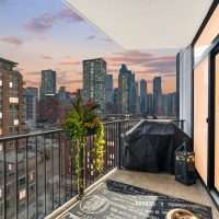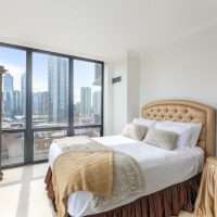 The primary suite is a true retreat, featuring a large walk-in closet with custom wood shelving and an indulgent marble and travertine bath. Spa-like details include a soaking jacuzzi bubble tub, and a steam shower with a frameless glass enclosure. A spacious second bedroom offers beautiful views and a large outfitted closet. The home offers plentiful storage with several custom closets along the hallway.. The second full bathroom includes a sleek walk-in shower. Other conveniences include an in-unit stackable washer/dryer and a dedicated storage locker. Erie Centre provides a full suite of amenities, including a modern, stylish lobby, 24-hour door staff and security, an on-site property manager, fitness center, rooftop sundeck with sweeping skyline views, a party room for entertaining, and secure bike storage.