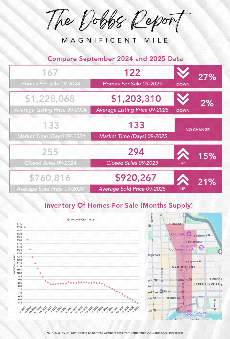 The Dobbs Report – Magnificent Mile Compare September 2024 and 2025 – Chicago Real Estate Market Data